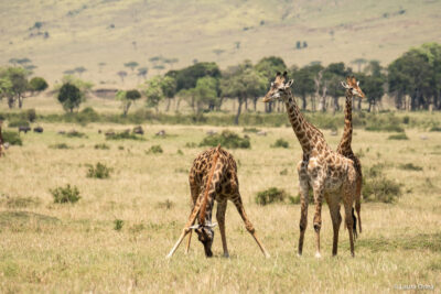 As James had suggested the previous evening, we were to embark on a different route on the third day. We would go further from the camp, into the Mara Triangle, in search of the endangered and elusive rhinos. Rumour had it that they hadn’t been seen in the past 2 weeks, so we were excited to try our luck, though still keeping our expectations low. On our way we passed through a town, which for me looked more like a village, and we were struck again, just like in the Philippines, by the poverty and the acute rubbish situation on the streets. But then we saw the colourful kids on their way to school, which is, in the end, a sign of progress, no matter how small it seems to us.