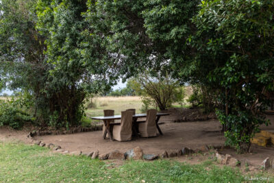 The plan was to go to the camp to get rid of our luggage and have a break before we would go on a game drive again later in the afternoon. The first contact with the camp was no less of a treat. I am so glad we chose Speke’s—it made our first encounter with the African landscape one to write about. We’ve been welcomed with a warm smile by a couple of Maasai people and a cold refreshing ginger drink. The main tent, with the bar and the lounge area, is pure delight. One of those places where time finds itself standing still. If it weren’t for our afternoon game drive, I would have lingered there forever photographing the exquisite handcrafted objects and browsing through the impressive collection of books in the library. Or just sitting there in awe with the otherworldly view.